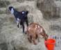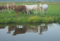 Wij hebben Blonde Acquitaine koeien. Koeien, kalfjes en de stier lopen allemaal bij elkaar. In het voorjaar gaan ze het weiland in. Wij hebben drie soorten schapen. Suffolk, Texelaars en Gothlanders. In het voorjaar is het gezellig druk in de stal met alle lammetjes. Onze varkens Teun en Aagje met in het voorjaar een heleboel roze biggetjes. Claire, onze prachtige Nubische geit met haar kinderen. Wij wandelen graag met haar langs ons weggetje. |